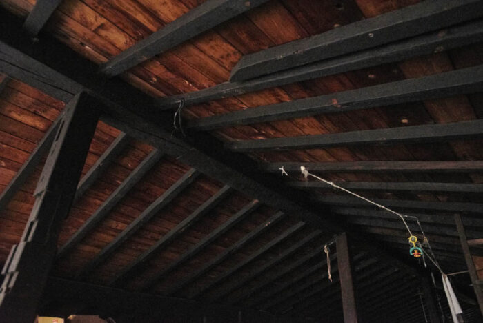 築140年ほど経つ、平家の民家。飛騨の民家のなかではコンパクトなサイズなので、別荘などにも使えます。時代を感じさせる、大きく曲がった梁が特徴です。現在は天井裏をロフトとして一部利用していますが、全て抜いて開放的なつくりにすることもできます。別の民家と組み合わせて、ゲスト用のプライベートハウスとして使うのもおすすめです。
